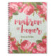 Caderno espiral do laço da matrona--honra branca e verde pálido do vintage com rosas cor-de-rosa e caligrafia. Personalizado.