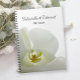 A elegante Orquídea Branca e o Notebook Espiral de Casamento de Véu Bridal pode ser personalizado com os nomes pessoais da noiva e do noivo e data para criar um planejador gentil, um livro de conselhos para os recém-casados ou um livro de hóspedes para sua cerimônia de casamento. Este clássico livro nupcial de notas floridas apresenta uma fotografia botânica de uma flor branca de orquídea falaenopsis com um véu branco e um fundo branco brilhante.