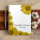 O bonito Bloco de Anotações Espirais de Bordo Amarelo Amarelo pode ser personalizado para criar um livro de conselhos para recém-casados ou livro de convidados para sua cerimônia de verão ou casamento de outono. Este clássico livro nupcial de notas floridas personalizado apresenta girassóis amarelos adorando os cantos com um fundo branco.