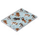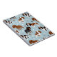 Corajoso Rei Cavalier Charles Spaniel com casacos pretos, castanhos e brancos com ossos de cão espalhados e padrões de pegadas.