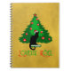 Uma silhueta do gato preto de Théophile Steinlen para o clube Le Chat Noir num cenário moderno de Natal, com uma árvore verde com ornamentos e o gato num chapéu de Papai noel e as palavras "Joyeux Noel".