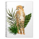 Cheetah Outlook I de Annie Warren. Um guepardo no estilo aquarela continua com folhas verdes tropicais no fundo. | 164730Z
