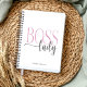 Este caderno rosa e cinza "Senhora Chefe" é um excelente presente para uma chefe feminina. Você tem a opção de personalizá-lo com o nome dela, ou você pode optar por deixá-lo despersonalizado. Para personalizar, basta clicar em "Personalizar este design", e Zazzle cuidará do resto.