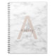 Caderno Espiral Chic Blush White Marble Script Name Monogramo