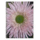 Um notebook de tamanho pessoal, encadernado em espiral, que apresenta a foto do cobrir de uma flor de rosa claro Chrysanthemum com um centro verde grande, comumente conhecido como flor de Mãe. Um design floral adorável! Use como diário ou para fazer anotações.