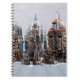 Renderização em 3D de uma cidade futurista de ficção científica em um fundo de cinza