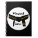 Personalize o Notebook espiral Black Belt de 3º grau de Artes Marciais com o nome do seu artista marcial e o ano da sua conquista. Este único livro de anotações sobre artes marciais de 3º grau, preto, apresenta uma fotografia digitalmente melhorada de uma cinta preta real com três bares de ouro ou listras adicionadas.