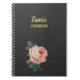 Caderno Espiral Cinza de nome personalizado de flor rosa