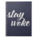 Deseja que outras pessoas se mantenham informadas sobre as coisas que se estão a passar nos seus bairros e no mundo em geral? Este moderno e elegante notebook de design de tipografia com script, com as palavras "ficar acordado", envia essa mensagem exata. Personalize este design adicionando seu próprio texto.