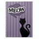 Um desenho animado de gata-preto, branco, dizendo miau em fundo roxo, design de halloween feliz