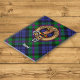 Crachá da crista Clan Baird cercado por uma correia e fivela sobre fundo tartano. Custom Text.