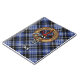 Crachá da crista Clan Clark rodeado por uma correia e fivela sobre fundo tartano. Texto personalizado.