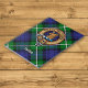Crachá da crista Clan Forbes rodeado por uma correia e fivela sobre fundo tartano. Custom Text.