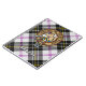 Crachá da crista Clan MacPherson cercado por uma pulseira e fivela sobre o fundo do tartan vestido. Custom Text.