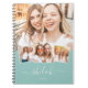 Um presente personalizado exclusivo com 4 fotos favoritas em um notebook moderno de colagem de fotos com seu nome em um roteiro escrito à mão e no ano seguinte em um pano de fundo verde da casa da moeda. Um doce presente pessoal para adolescentes, crianças ou presas! Libere a criatividade! Seu nome no script de tendências em um notebook personalizado de colagem de fotos. perfeição personalizada para notas e memórias de na moda. 📓 #CustomDesign #TrendyNotebook