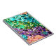 Um mosaico de miçangas em várias cores agrupadas para dar um efeito colorido do arco-íris. Pinks, verdes, púrpura e blues deitam-se lado a lado para criar uma coleção de bolhas de vidro brilhantes.