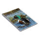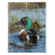 Notebook Shoveler de norte. A cabeça verde iridescente e os olhares amarelos espantosos, juntamente com os pretos, brancos e belos castanhais do corpo fazem do norte do ralo um membro muito atraente da família dos patos. A enorme "colher em forma de colher" preta é usada para filtrar os pequenos insetos e algas das lagoas e dos tocos que eles alimentam.