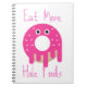 Rosquinha engraçada dizendo que coma mais comidas furadas. Este design parece realmente eficaz neste notebook espiral