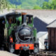 Um design fotográfico de um belamente restaurado trem verde a vapor.