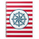 Design náutica com decoração de bússola em fundo listrado vermelho e branco