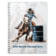 Imagem gráfica do estilo do pop art em marrom, em azul e em preto de uma menina que compete com seu cavalo em torno de um tambor com seu vôo do cabelo. Texto customizável.
