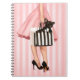 Compra à moda da senhora com o filhote de cachorro do buldogue francês no fundo cor-de-rosa stripy. Pintado pelo artista Maryline Cazenave.