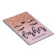 O moderno caderno de lascas de ouro rosa de tendências. Design com script de caligrafia escovado ''lashes'' sobre fundo rosa dourado. Perfeito para o seu negócio de chibatadas.