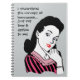 Um notebook bonito com uma imagem retrô de uma bonito morena com batom vermelho, e o texto, "Eu entendo o conceito de trabalho doméstico... só não como isso se aplica a mim!" Engraçado, e excelente para qualquer mulher que se deteste a fazer cozinhar, limpeza e lavanderia!