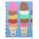 Um legal bonito e colorido como um padrão de cones de sorvete declaração de verão legal congelada sobremesa tratada com o logotipo feliz motto personagem de desenho animado kawaii multicolor diversão divertida estética design de comida ilustrada com deluxe legal caderno de vazios alinhado com jornal.