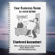 Design de Ilustração Contabilizada ou Contabilística para Personalizar. O cobrir do notebook apresenta um desenho de um contador que está surpreso em ver um cliente entrando no carregando de um gigante porquinho. Adicione o nome e o endereço da sua empresa e substitua a imagem central pela sua, se assim o desejar.