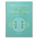 Estes na moda e livro de hóspedes feito sob encomenda moderno do aniversário caracterizam 3 motivos redondos da longevidade que são o mais frequentemente associados com celebrações do aniversário. As cores são hortelã não metálica do aqua em um fundo da cor do aqua. Sobre os séculos, o motivo da longevidade foi usado extensivamente nos vestuários, na mobília, na arquitetura e na arte popular em China como uma maneira de trazer bênçãos na casa. Este guestbook elegante e clássico está pronto para ser personalizado para uma celebração especial do aniversário.
