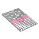 Características monogrammed modernas e na moda cinzas do caderno espiral das listras da viga e listras da viga do branco e teste padrão floral com uma beira costurada do acento fita cor-de-rosa com um quadro cor-de-rosa redondo do acento esboçado em preto e branco para seus inicial e nome. Mostre sua personalidade com este caderno espiral do divertimento e da listra na moda da viga. Aperfeiçoe para um jornal, tomando notas, trabalho, escola e casa. Faz um grande presente para todas as ocasiões. Clique "personalizam-no!" abotoe para mudar o tamanho do texto, a cor de texto, o estilo de pia batismal e o mais! Note por favor: a beira horizontal do quadro do ponto da fita do acento cor-de-rosa é rosa contínuo com uma aparência do ponto da fita.