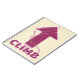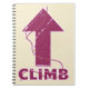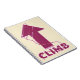 Um design de tipografia que tem a palavra subida e uma pintura de seta para cima. Corda correndo tece entre as letras da palavra escalada. Para quem ama esporte ou escalar trade.