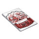 Tenda, árvores e fita de "acampamento". Crachá desenhado à mão com tonalidade vermelha de aquarela