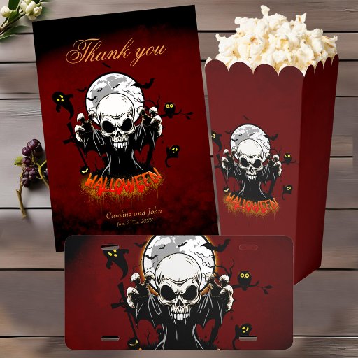Crânio com dentes afiados e ameaçadores no meio de um cenário escuro e estranho. O crânio, envolto num manto preto, parece um guardião sinistro da noite. Seus dedos longos, parecidos com garras parecem alcançar o espectador, como se os puxassem para dentro das sombras. Os morcegos escuros voam desesperadamente, suas silhuetas dançando à luz da lua, reforçando o sentimento de mal-estar. Uma coruja fantasmagórica com olhos brilhantes que olham para fora da escuridão como dois carvões brilhantes, observando tudo, senta-se num galho brilhado.