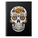 Caderno Espiral Crânio de Rosa Amarelo em Preto