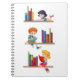 Crianças sentadas em prateleiras lendo livros. Este design parece realmente eficaz neste notebook espiral