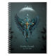 Caderno Espiral Cruz gótica com elementos decorativos e aves.