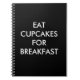 O ditado bonito, COMER CUPCAKES PARA O CAFÉ DA MANHÃ em um fundo preto, acentua este notebook, fazer-o perfeito como presente para um amigo ou para você.