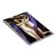 Cupido beijando dolorosamente Psyche na bochecha, suas lindas asas com penas roxas e colchas de ouro envoltas. Óleo pré-Raphaelite na canvas da artista inglesa Annie Louisa Robinson Swynnerton, intitulada "Cupid and Psyche", 1890.