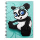 Um panda giro com uma banda de cabeça de flor de turquesa. Mostrado com um design floral em um fundo de turquesa.