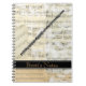 Uma grande ilustração do vintage de uma flauta aparece em uma colagem do fundo da partitura do vintage, aperfeiçoa para um jogador, um músico ou um melómano de chifre, com uma banda preta pronta para personalizar com seu próprio nome ou título. Outros artigos e o design da música da trompa francesa e do vintage estão disponíveis em minha loja de Zazzle.