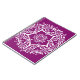 Esta mandala branca senta-se sobre um fundo roxo quente. A cor é luxuosa e criativa. Parte da coleção Jarn Mandala.