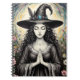 Este caderno apresenta uma bruxa serena em um campo de margaridas tirando um momento consciente para rezar e dar gratidão por suas bênçãos.