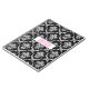 Elegante padrão uniforme de amortecimento floral branco sobre fundo preto. Toque de rosa. Monograma personalizado