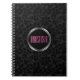 Cor damasco floral monocromática, elegante e simples, e círculo negro prateado. Toque de rosa. Monograma personalizado
