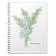 Caderno espiral com capa impressa com ilustração de flora da erva alecrim em estado de floração. Desenho feito com grafite e lápis colorido. Arte: Lápis colorido e grafite em papel. Direitos autorais Dominic A. White. Todos os direitos reservados.