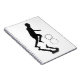 Uma silhueta preta e branca do filho de um pescador, brincando nas ondas com aquele brinquedo clássico de todas as idades, o arco e o bastão.