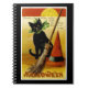 Ilustração de cartão de saudação vintage de Halloween com um gato preto.