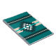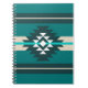 Padrão étnico boêmico asteca com formas geométricas em branco, bege e turquesa em fundo listrado